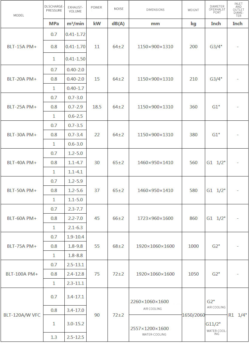 BLT PM + permanent magnet variable frequency compressor The combination of the newly launched Atlas Copco main engine and high-efficiency permanent magnet motor, the mature split direct drive system, and the disadvantages of no integrated permanent magnet variable frequency compressor, such as inconvenient disassembly and easy demagnetization, pursue the ultimate efficiency and ensure the high reliability of the compressor.